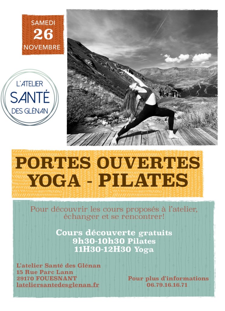 Une journée « portes ouvertes » du studio YOGA/PILATES aura lieu le samedi 26 Novembre. Programme ci-dessous :