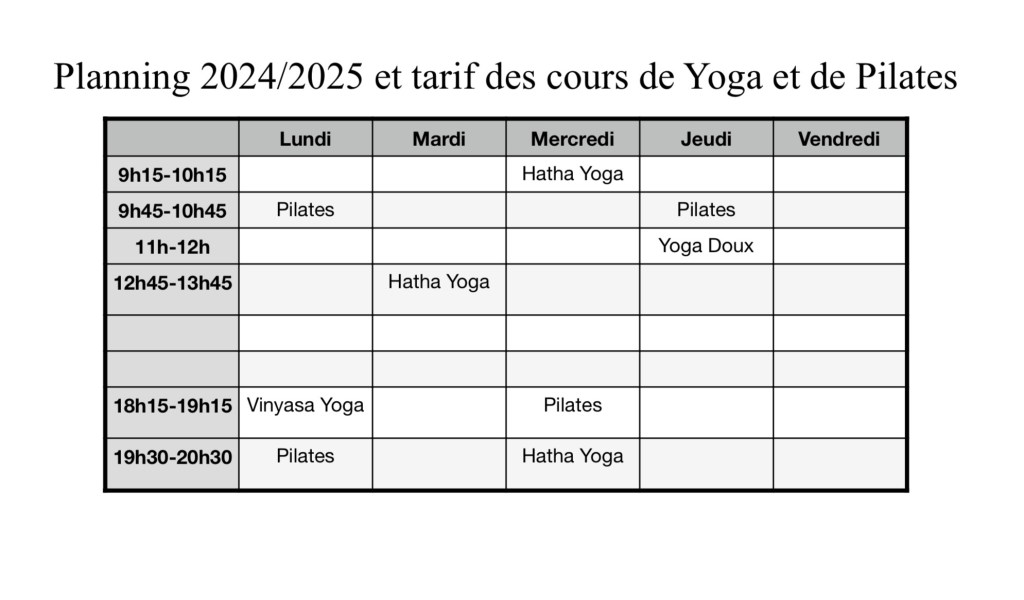 Après des vacances bien méritées, les cours de yoga et de pilates reprennent dès le lundi 15 septembre 2025.